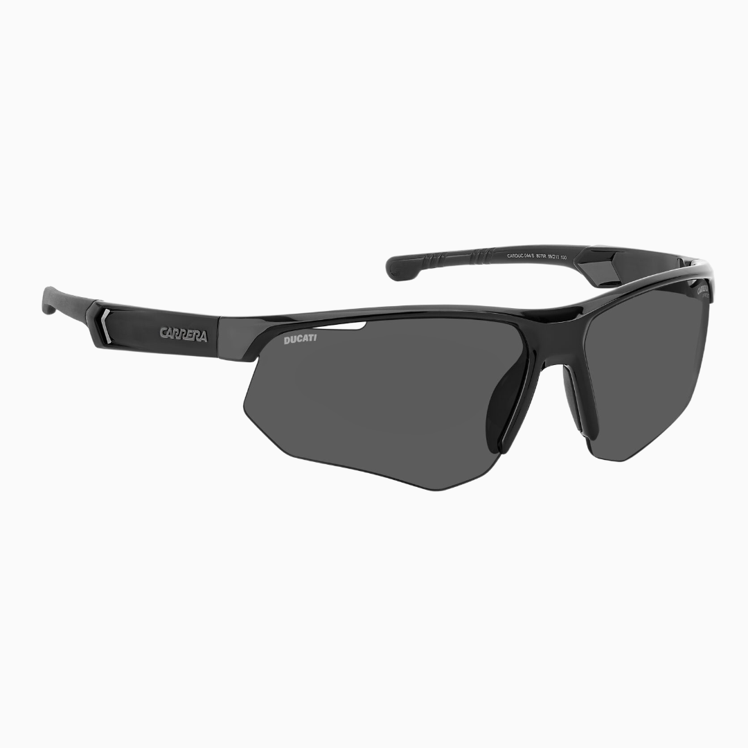 Стильные и функциональные солнцезащитные очки CARRERA DUCATI в чёрном цвете — выбор тех, кто ценит спортивный дизайн и надёжную защиту от солнца. Модель воплощает дух скорости и технологий: сотрудничество Carrera с Ducati отразилось в деталях — например, в логотипе Ducati на дужке.